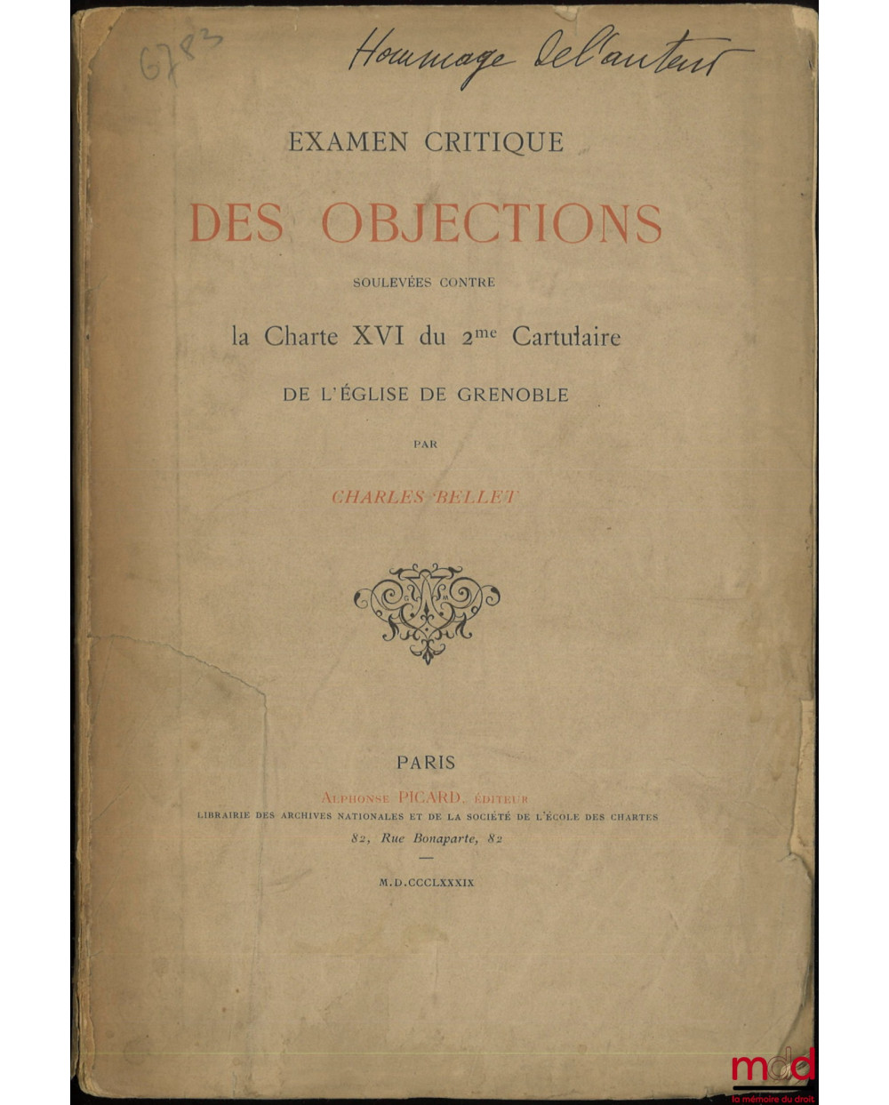EXAMEN CRITIQUE DES OBJECTIONS SOULEVÉES CONTRE LA CHARTE XVI DU 2e CARTUALAIRE DE L’ÉGLISE DE GRENOBLE