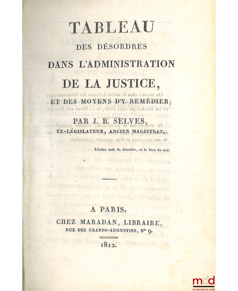 TABLEAU DES DÉSORDRES DANS L’ADMINISTRATION DE LA JUSTICE, Et des moyens d’y remédier ; DE L’IMPOSSIBILITÉ Du retour de M. Decazes aux affaires ; RÉFLEXIONS POLITIQUES SUR QUELQUES ÉCRITS DU JOUR et sur les intérêts de tous les français par M. de Chateaubriand.