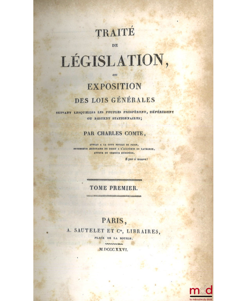 TRAITÉ DE LÉGISLATION, OU EXPOSITION DES LOIS GÉNÉRALES suivant lesquelles les peuples prospèrent, dépérissent ou restent stationnaires