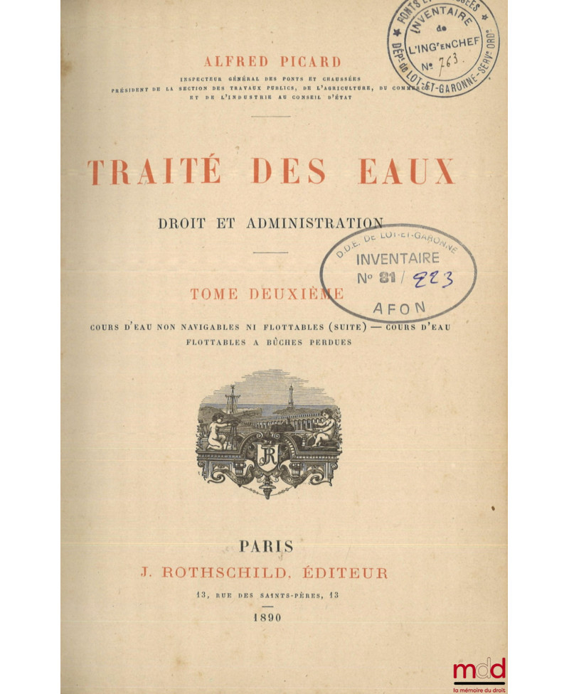 TRAITÉ DES EAUX, Droit et administration, t. II [seul] : Cours d’eau non navigables ni flottables (suite) - Cours d’eau flottables à bûches perdues