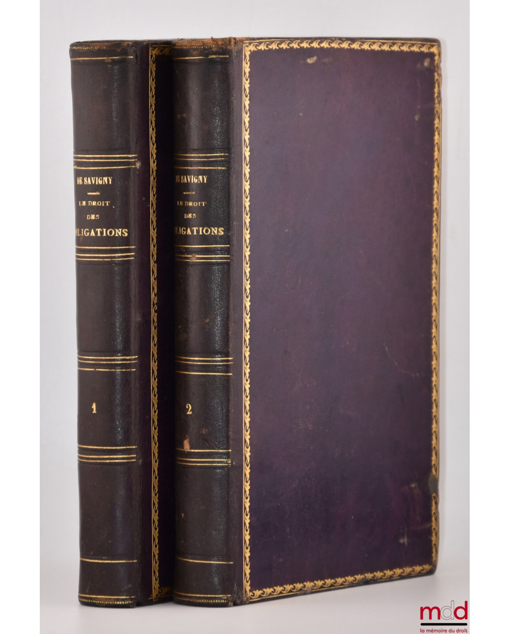 Description : 2 vol. in-8, pl. rel. en maroquin aubergine, tit. et tom. dorés sur dos lisse orné de filets soulignants dorés et estampés à froid, plats encadrés d’un filet doré et d’une frise dorée, Livre de prix de la Faculté de droit de Nancy : « Concours de 1re année, Droit romain, 1er prix, M. Vainker Gaston, de Luneville (Meurthe), 1866-1867 », tr. mouchetées, (de légères épidermures, qq. impacts sur le t. II, qq. rousseurs et mouillures à l’int.), bel exemplaire et bon état, XII-438 / 484 p.