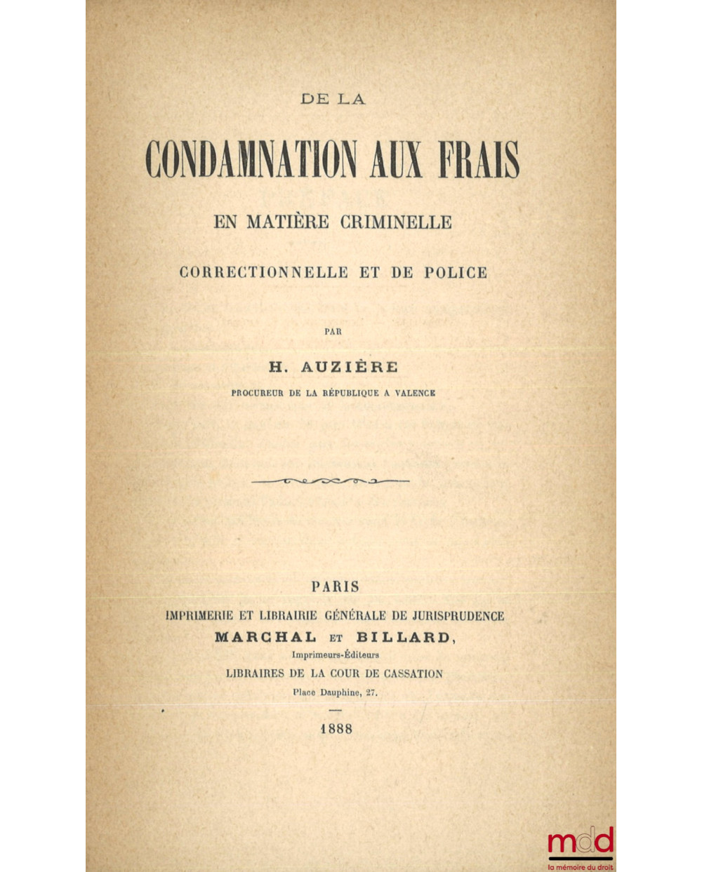 DE LA CONDAMNATION AUX FRAIS EN MATIÈRE CRIMINELLE, CORRECTIONNELLE ET DE POLICE