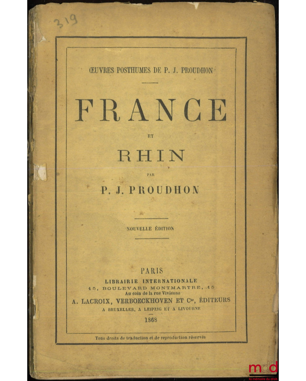 FRANCE ET RHIN, Nouvelle éd., Œuvres posthumes de P. J. Proudhon