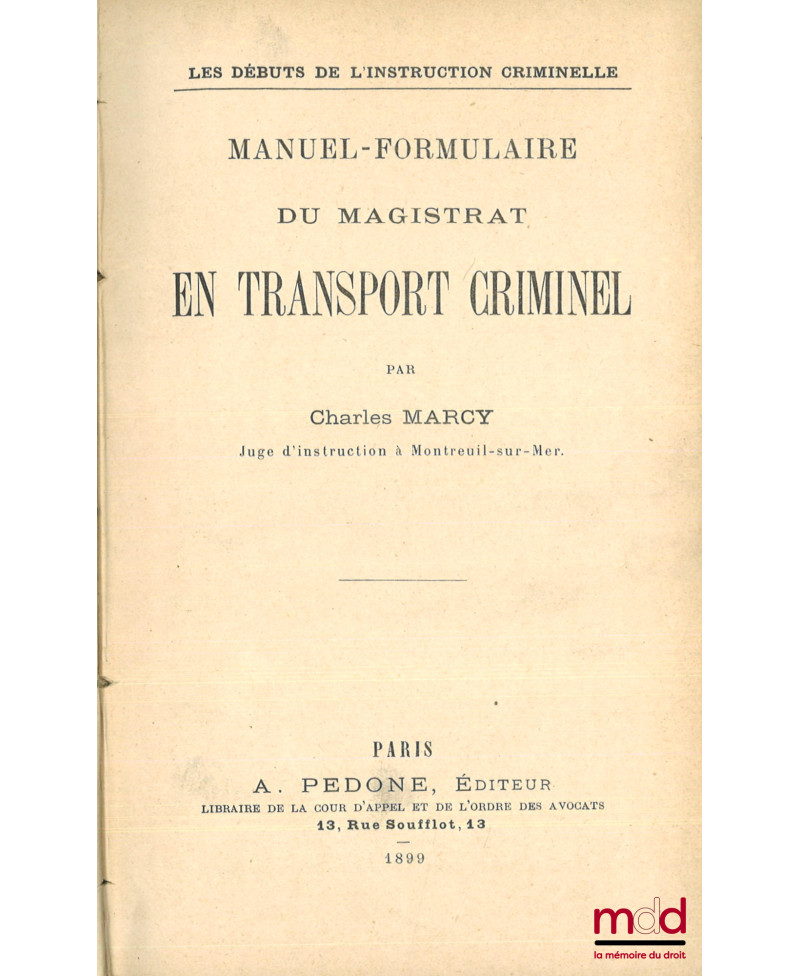 MANUEL-FORMULAIRE DU MAGISTRAT EN TRANSPORT CRIMINEL, Les débuts de l’instruction criminelle
