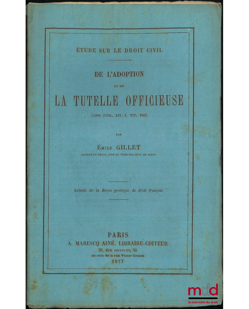 DE L’ADOPTION ET DE LA TUTELLE OFFICIEUSE, (Code civil, Liv. I, Tit. III), Extrait de Revue pratique de droit français