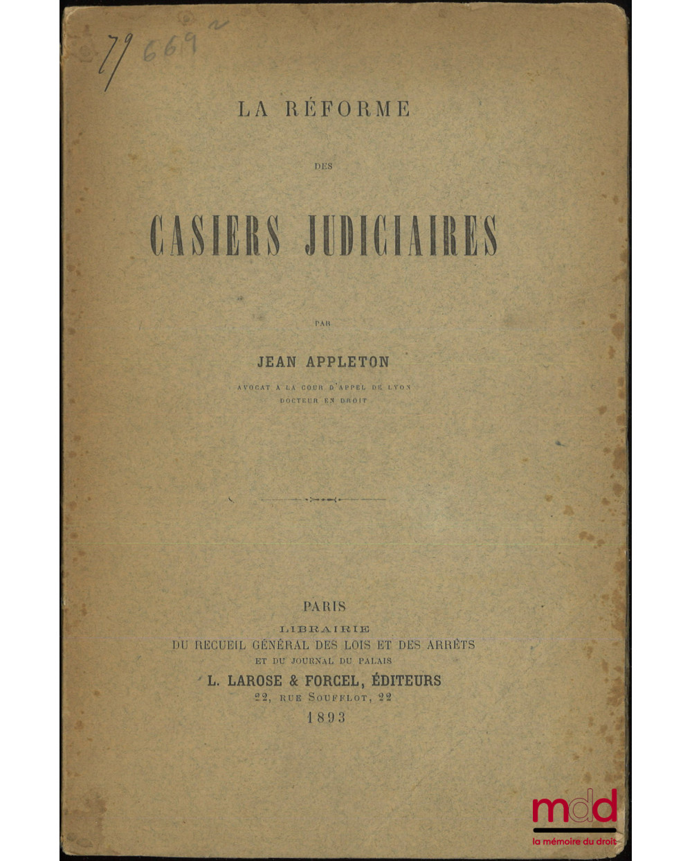 LA RÉFORME DES CASIERS JUDICIAIRES