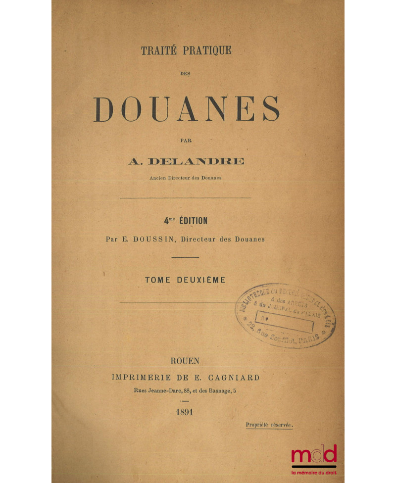 TRAITÉ PRATIQUE DES DOUANES, 4e éd. par E. Doussin, [Avec deux suppléments]