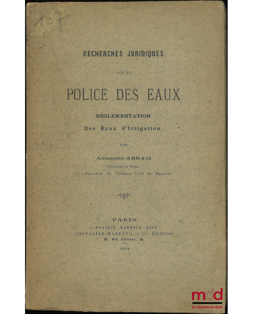 RECHERCHES JURIDIQUES SUR LA POLICE DES EAUX, Réglementation des eaux d’irrigation