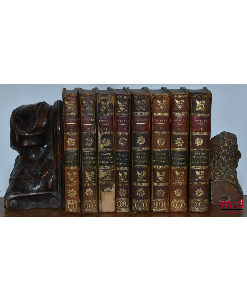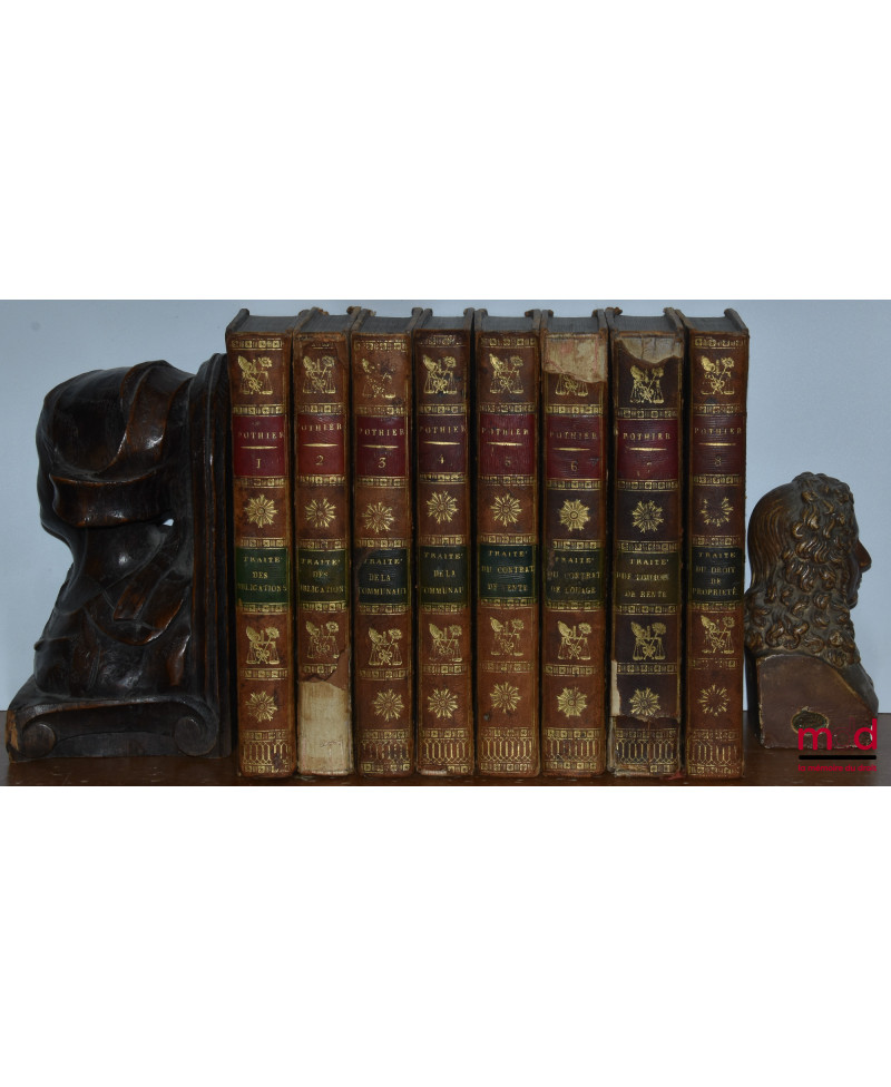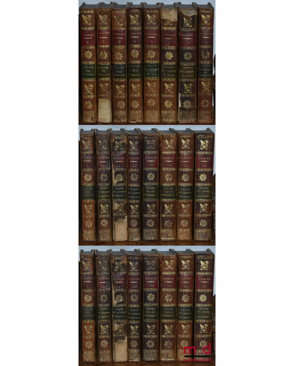 Magnifique édition des œuvres complètes de Pothier, à l’exception de la Coutume d’Orléans et des Pandectes, dans son édition non-commentée. Rare.