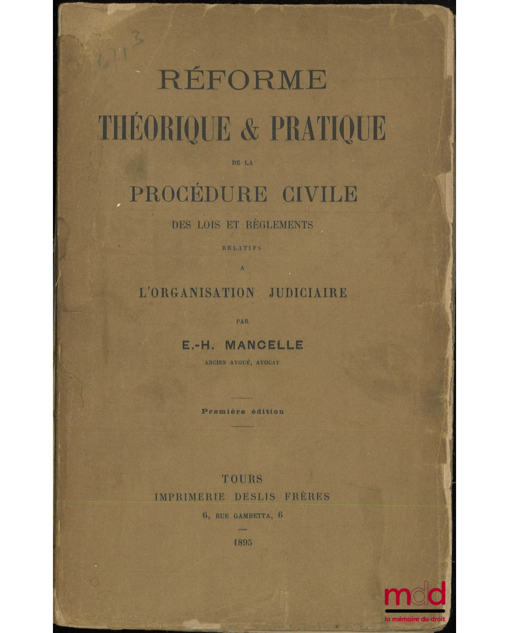 RÉFORME THÉORIQUE ET PRATIQUE DE LA PROCÉDURE CIVILE, Des lois et règlements relatifs à l’organisation judiciaire, 1re éd.