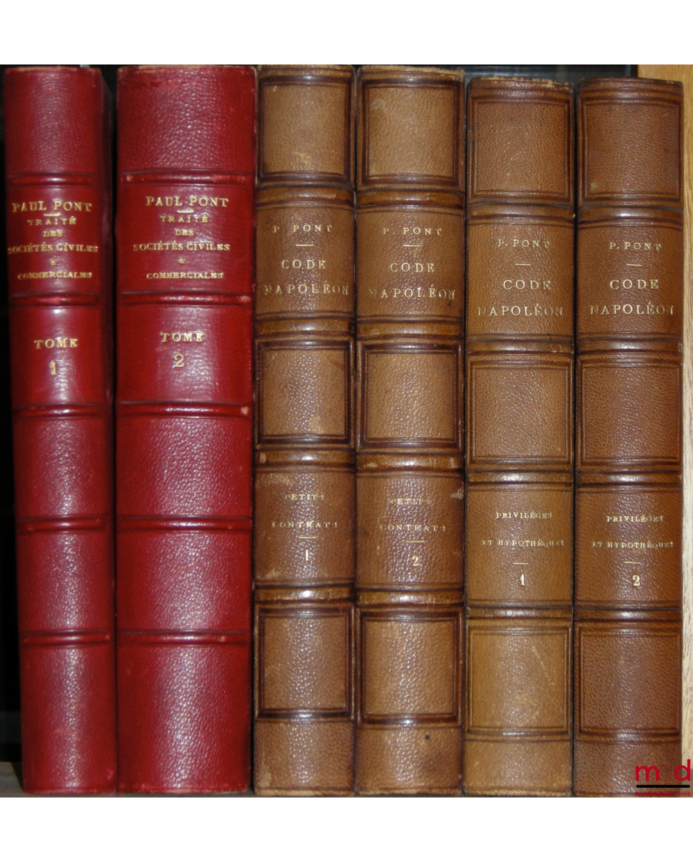 EXPLICATION DU CODE NAPOLÉON : 1°) TRAITÉ-COMMENTAIRE DES SOCIÉTÉS CIVILES ET COMMERCIALES (2 t.) ; 2°) COMMENTAIRE-TRAITÉ théorique et pratique DES PRIVILÈGES ET HYPOTHÈQUES mis en rapport avec la loi sur la transcription (2 t.) et 3°) COMMENTAIRE-TRAITÉ DES PETITS CONTRATS (2 t.)