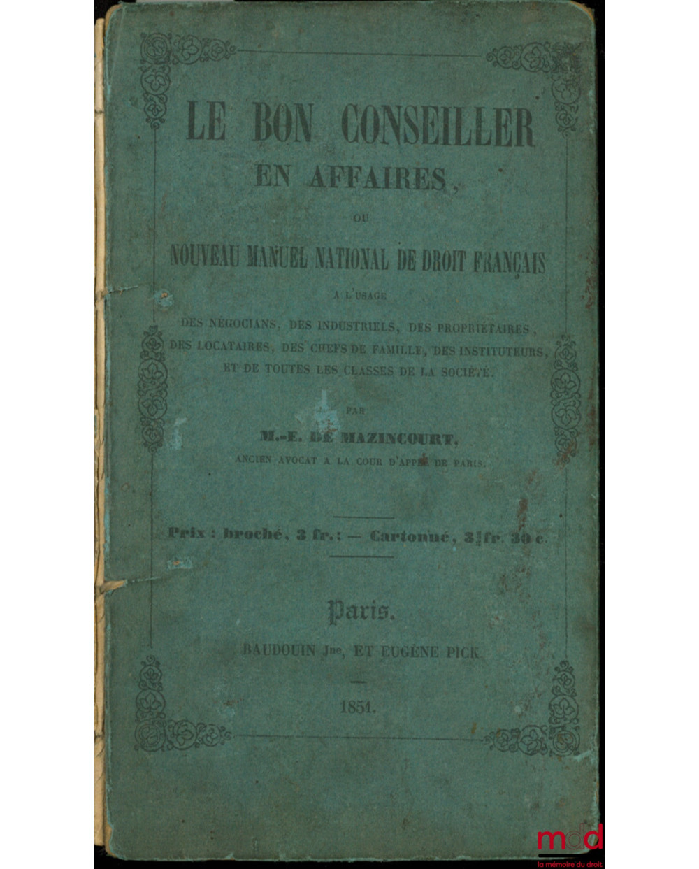LE BON CONSEILLER EN AFFAIRES, ou NOUVEAU MANUEL NATIONAL DE DROIT FRANÇAIS