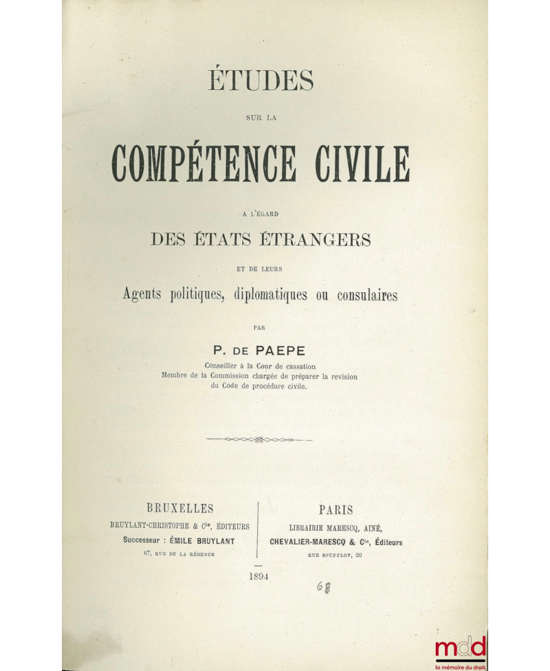 ÉTUDES SUR LA COMPÉTENCE CIVILE À L’ÉGARD DES ÉTATS ÉTRANGERS et de leurs Agents politiques, diplomatiques ou consulaires
