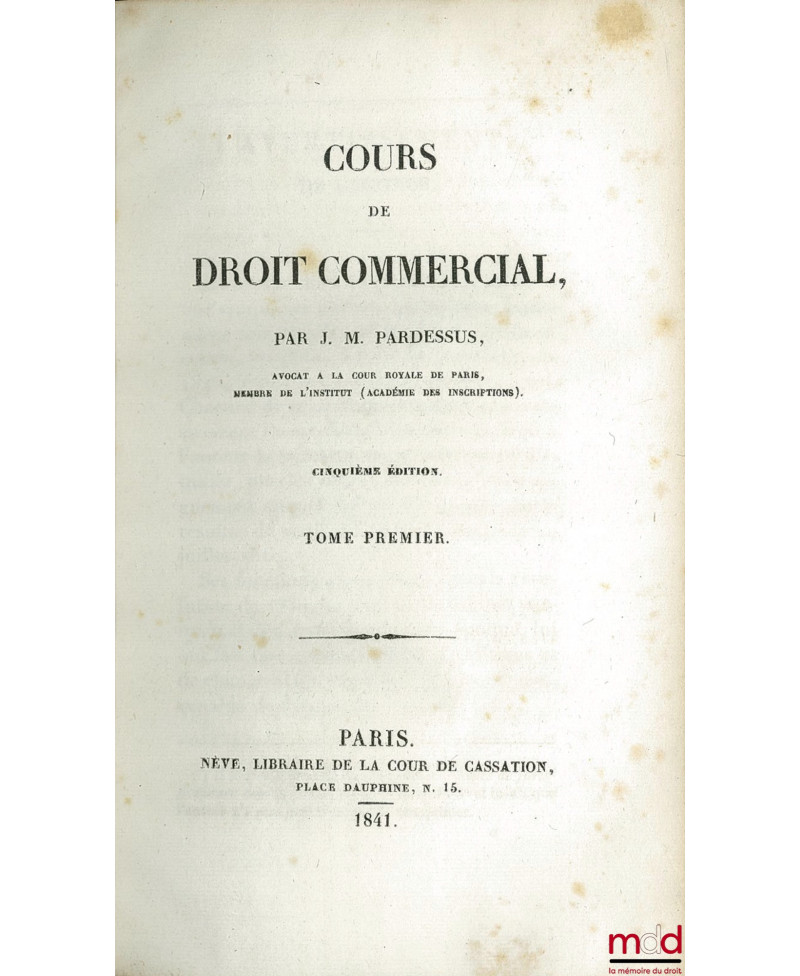 (Dupin n° 1502). La doctrine contemporaine développe à l’égard de Pardessus une attitude assez ambivalente. D’un côté elle constate que P. a été l’auteur de l’œuvre majeure de la doctrine commercialiste de la première moitié du XIXe siècle. Mais d’un autre côté elle lui reproche d’avoir transposé au droit commercial les méthodes de l’École de l’exégèse et d’avoir ainsi contribué à rigidifier une matière pour laquelle la souplesse et l’adaptation aux faits sont au contraire essentielles (J. Hilaire I.H.D.C., n° 65). Cette critique paraît quelque peu injuste : P. a en effet étendu son domaine d’étude au-delà des seules bornes du code du commerce et a tenté d’embrasser, le premier, l’ensemble de la matière. En réalité, les reproches qui peuvent lui être faits tiennent à la médiocrité de la doctrine de l’ancien droit (à l’exception de la famille Savary) qui n’a pas posé les bases du droit moderne comme par ex. Pothier et Domat avaient pu le faire en droit civil.