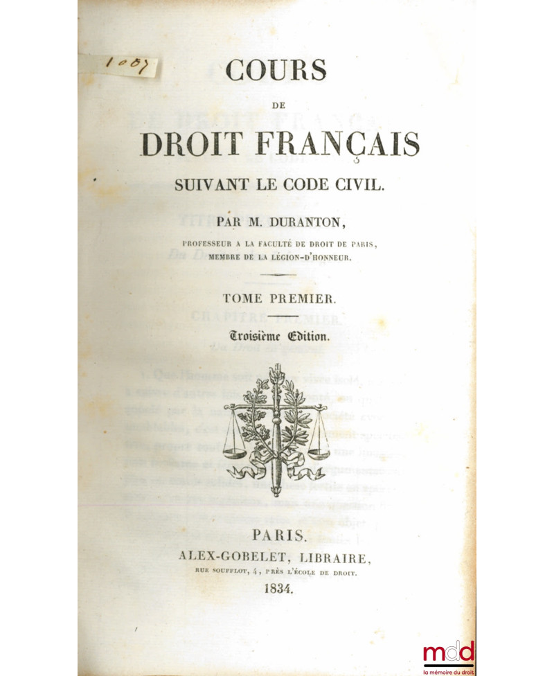 COURS DE DROIT FRANÇAIS SUIVANT LE CODE CIVIL, 3ème éd. ; t. I, IV, XII, XIII, XV, XVII (manque t. II, III, V, VI, VII, VIII, IX, X, XI, XII, XIV, XVI et XIX)