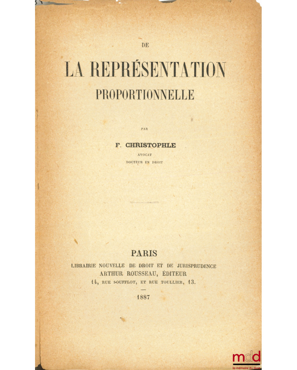 DE LA REPRÉSENTATION PROPORTIONNELLE