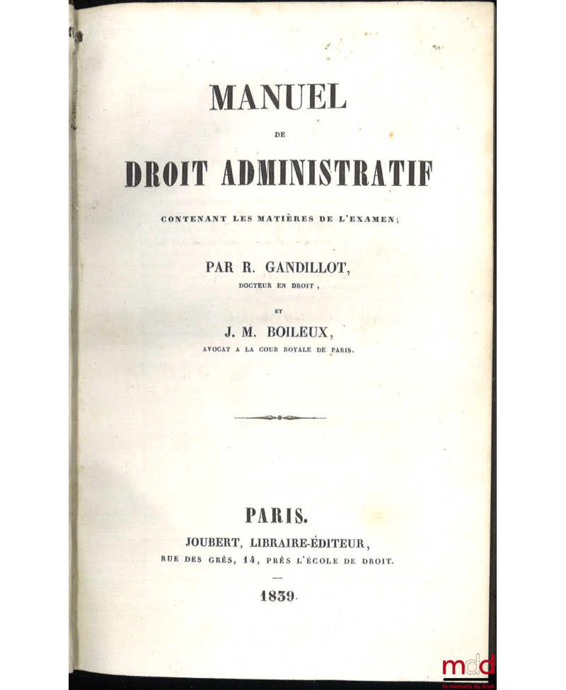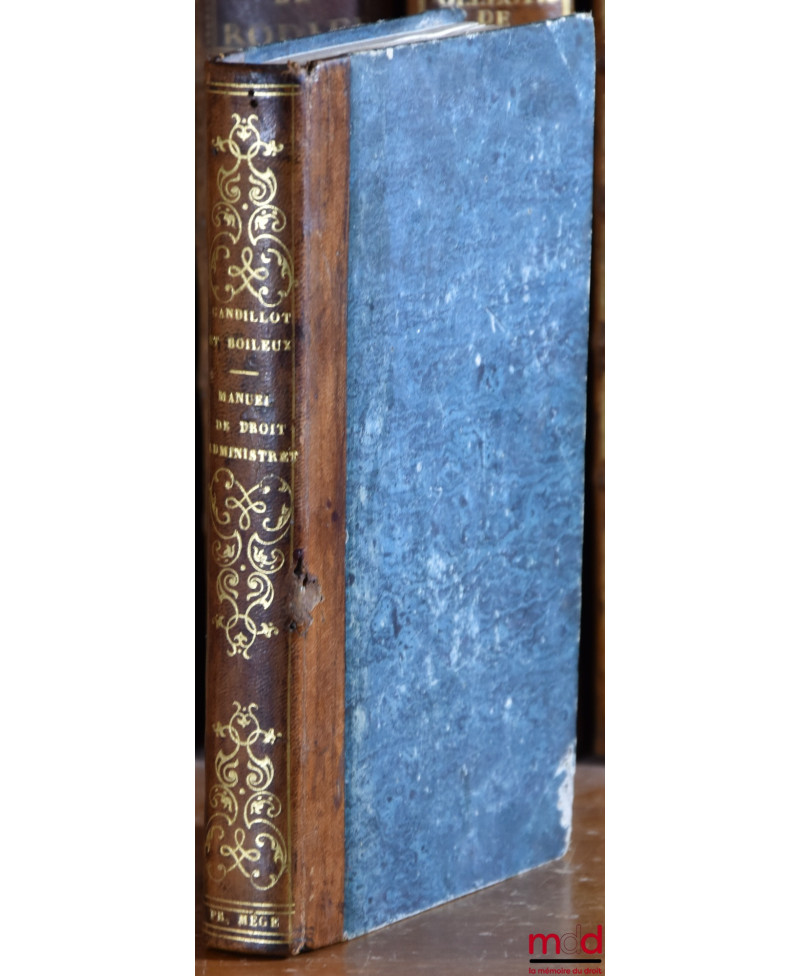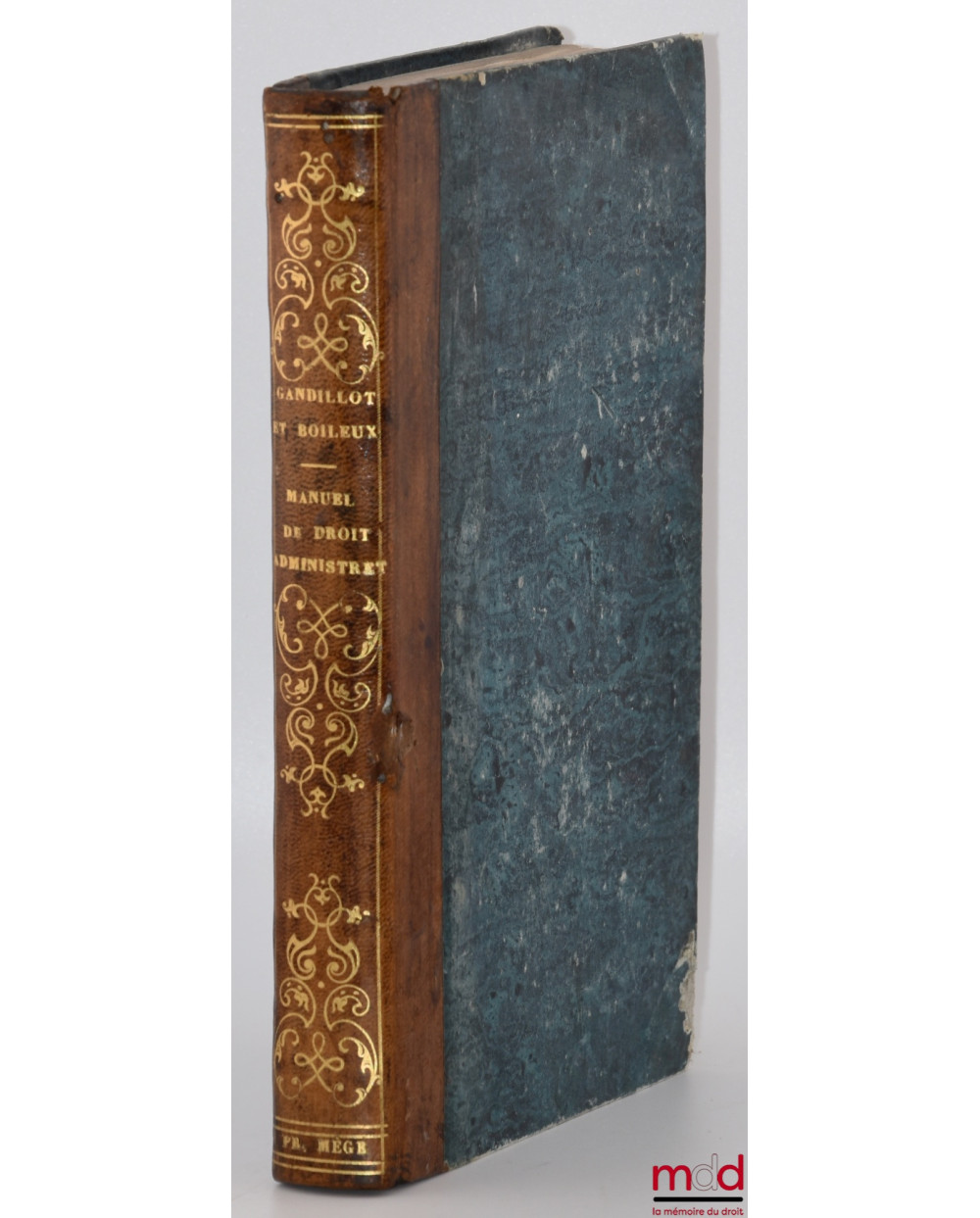 Appartenant à la première vague des cours ou répétitions de droit administratif, ce manuel consiste en un commentaire exégétique des « matières administratives » et la particularité du cours de Gandillot et Boileux tient certainement dans la première apparition de la notion de « Services publics » à laquelle la seconde partie du manuel est consacrée. Très rare.