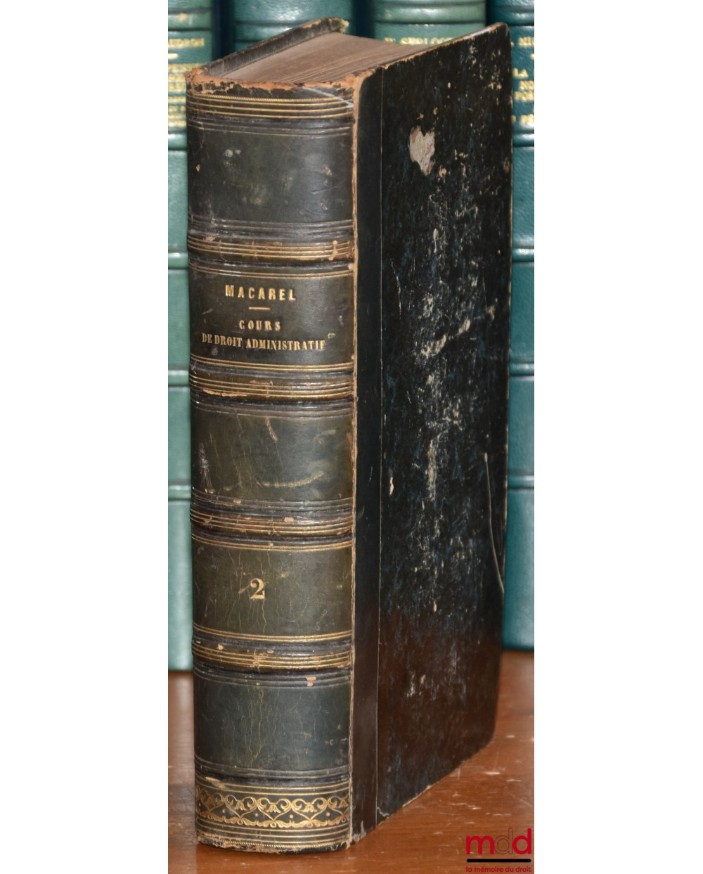 Première édition de ce rarissime monument du droit administratif dont il n’est pas nécessaire de rappeler l’importance qu’il eut, et qui demeure, aujourd’hui encore, abondamment cité. Il y défend, en particulier, le principe de séparation de l’autorité administrative active et du juge administratif.