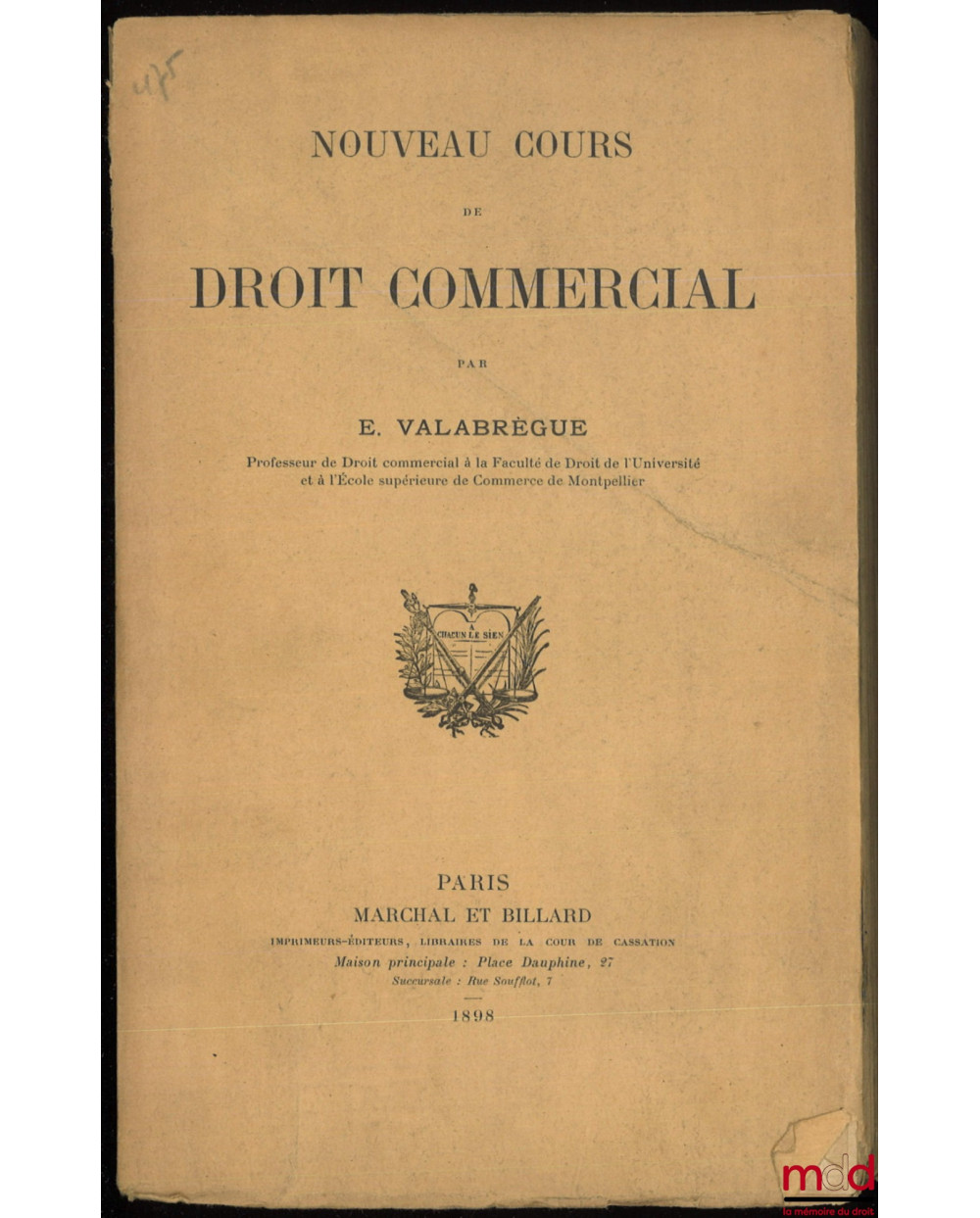 NOUVEAU COURS DE DROIT COMMERCIAL