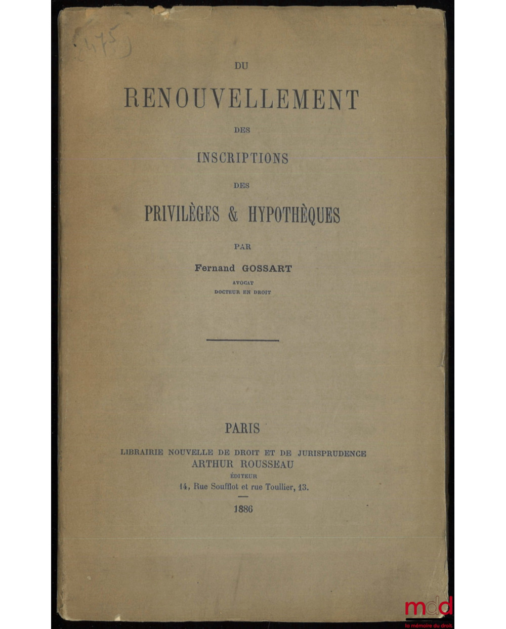 DU RENOUVELLEMENT DES INSCRIPTIONS DES PRIVILÈGES ET HYPOTHÈQUES