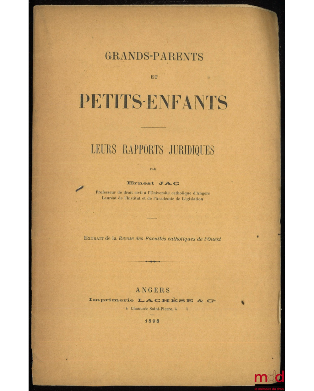 GRANDS-PARENTS ET PETITS-ENFANTS. Leurs rapports juridiques