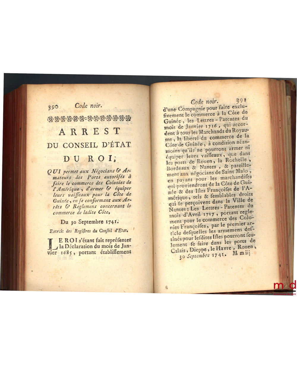 LE CODE NOIR, OU RECUEIL DES REGLEMENS RENDUS JUSQU’À PRÉSENT CONCERNANT LE GOUVERNEMENT, L’ADMINISTRATION DE LA JUSTICE, LA POLICE, LA DISCIPLINE & LE COMMERCE DES NÈGRES DANS LES COLONIES FRANÇOISES. ET LES CONSEILS & COMPAGNIES ÉTABLIS À CE SUJET