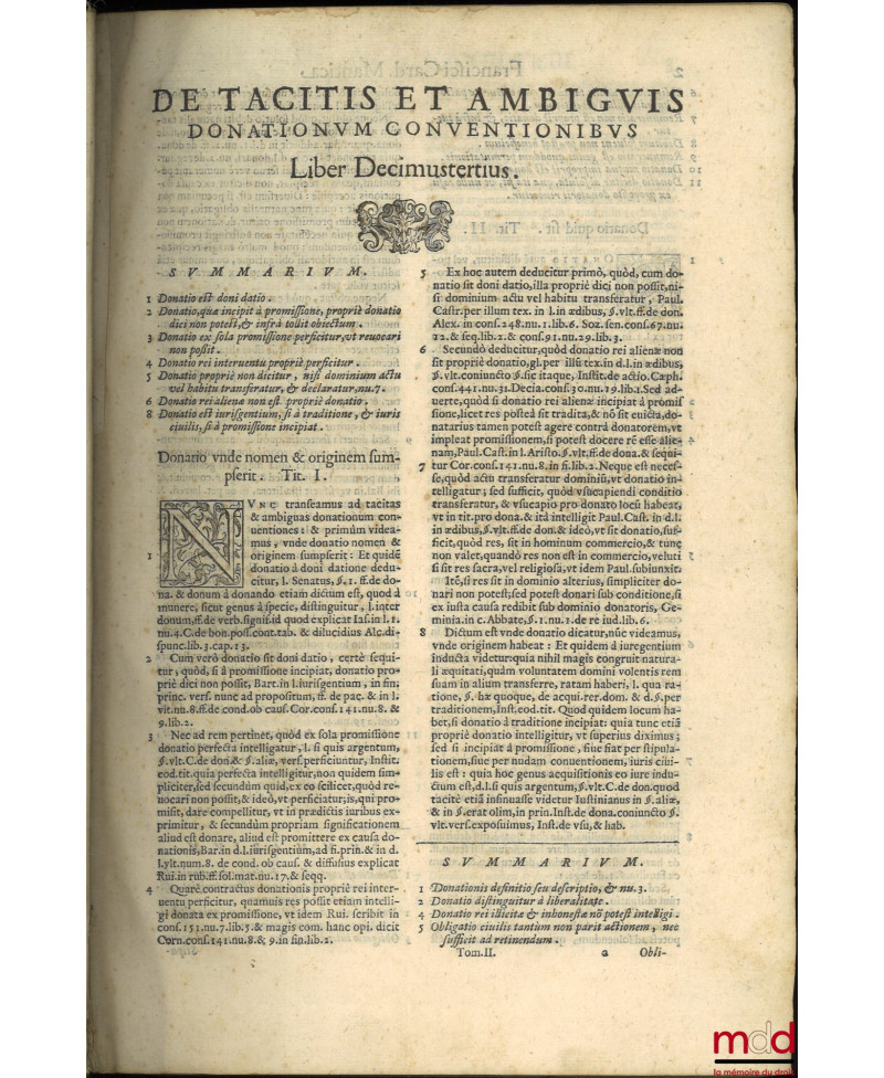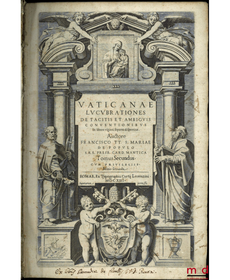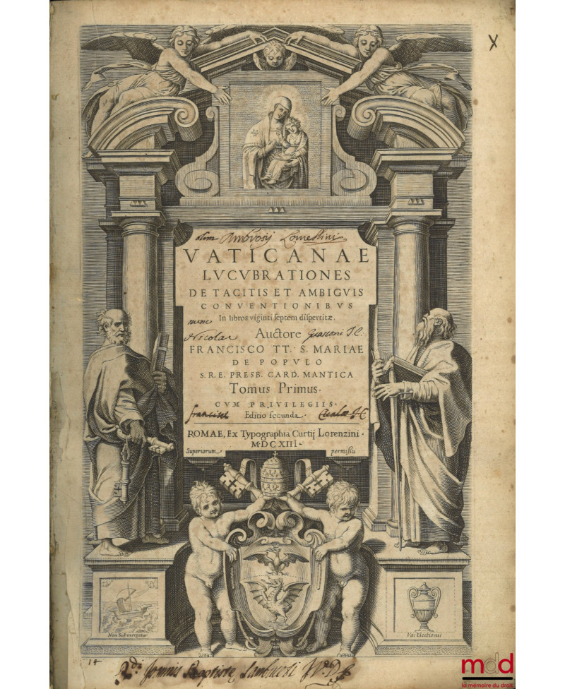 VATICANAE LUCUBRATIONES DE TACITIS ET AMBIGUIS CONVENTIONIBUS, In libros viginti septem dispertitæ. Auctore FRANCISCO TT. S. MARIAE DE POPULO S.R.E. PRESB. CARD. MANTICA, Tomus Primus [&] Secundus, CUM PRIVILEGIIS, Editio secunda