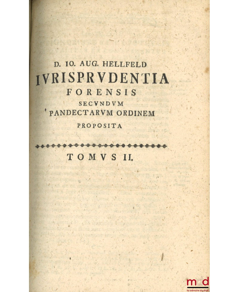 Grand romaniste allemand du XVIIIe, nous présentons ici son œuvre principale qui servit de modèle aux observations et critiques de Christian Friedrich Glück et Christian Friedrich Mühlenbruchs pour l’étude des Pandectes jusqu’au XIXe siècle.