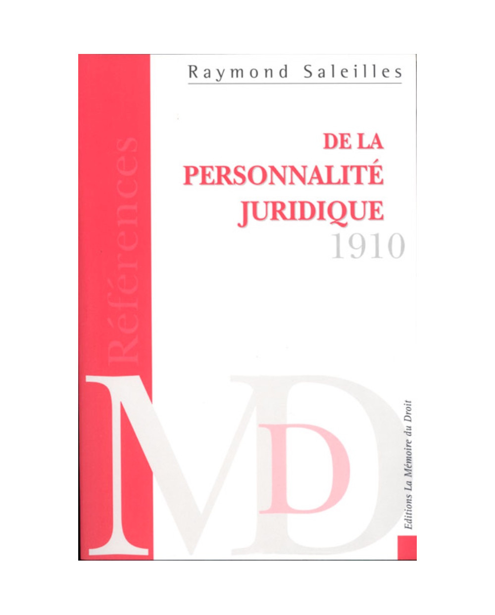 DE LA PERSONNALITÉ JURIDIQUE - HISTOIRE ET THÉORIES Vingt-cinq leçons d’introduction à un cours de droit civil comparé sur les personnes juridiques Réimpression de l’éd. de 1910 chez Arthur Rousseau