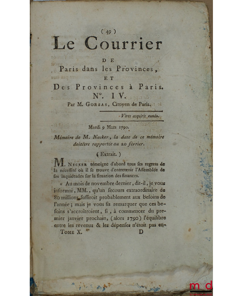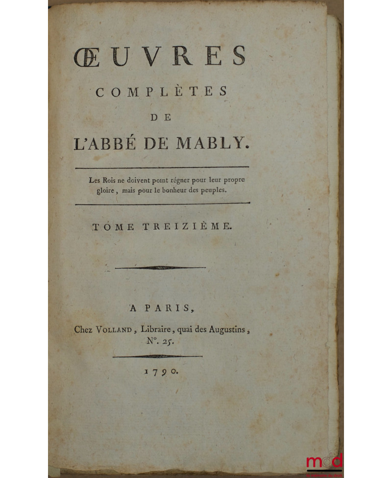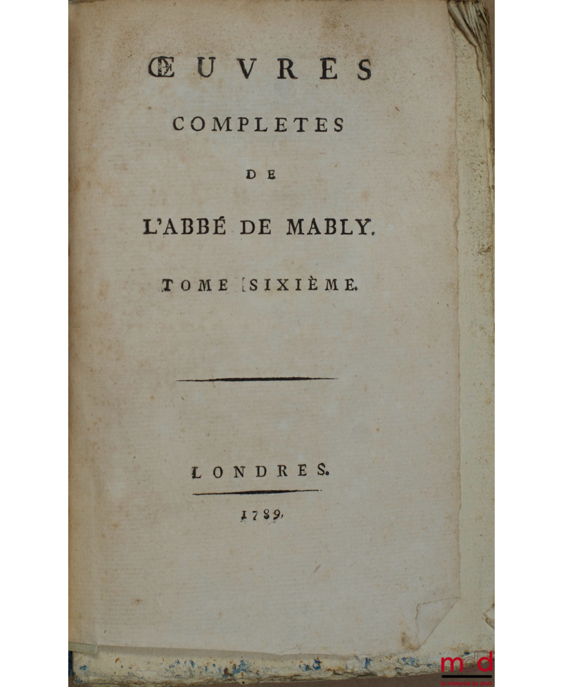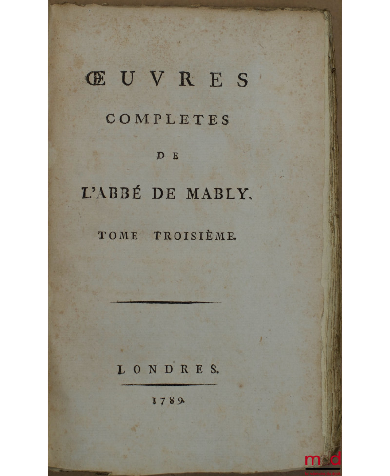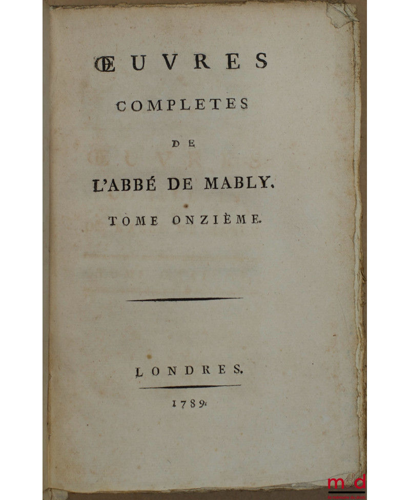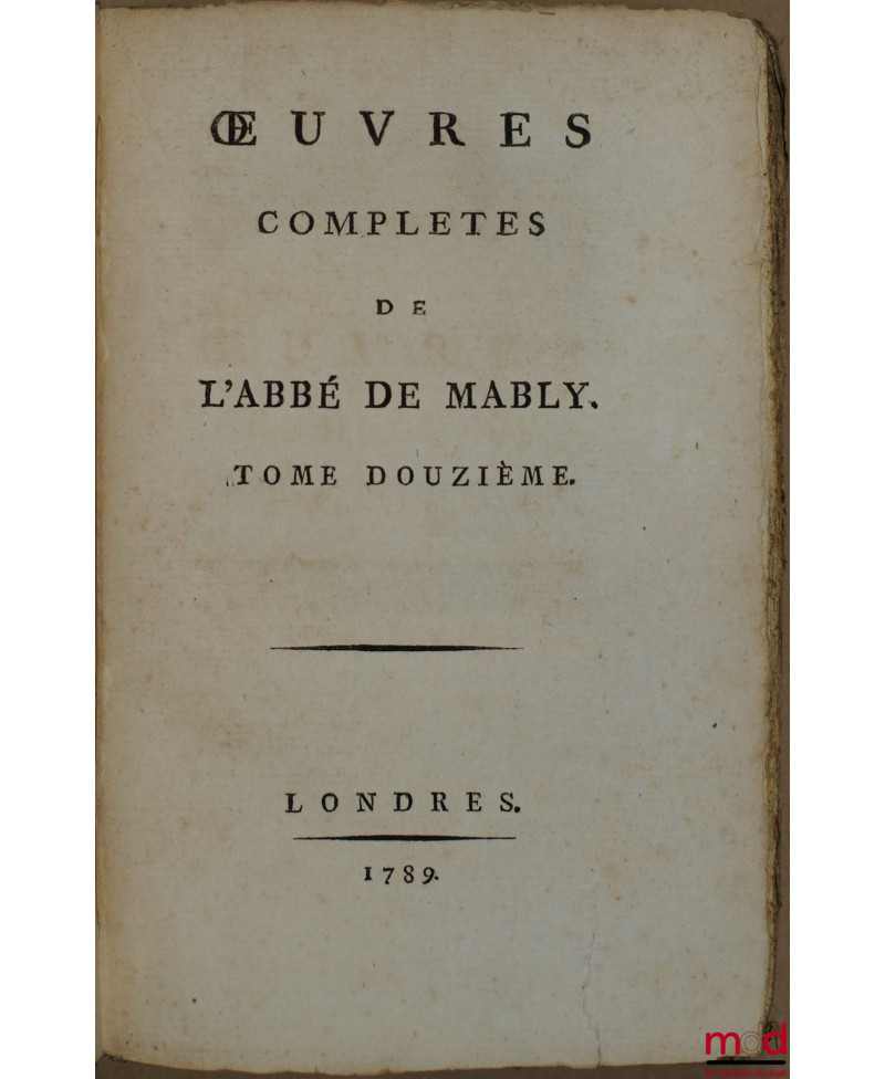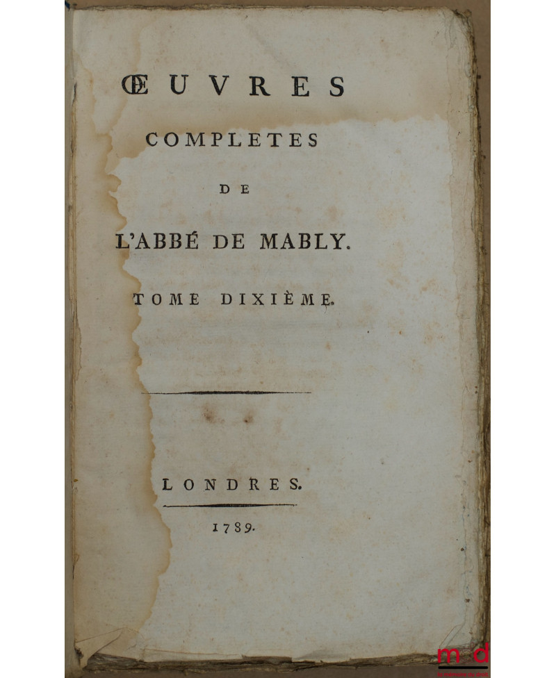 ŒUVRES COMPLÈTES DE L’ABBÉ DE MABLY (t. V manquant)