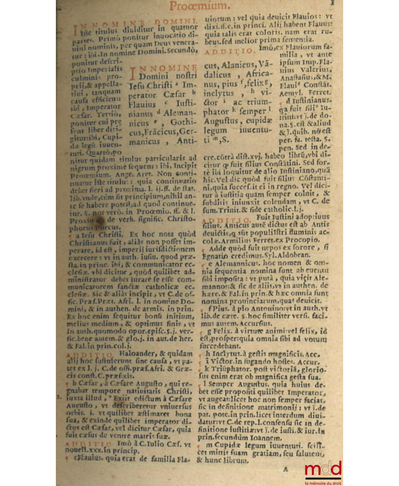 JUSTINIANUS [Justinien], ACCURSII (Francisci) [ACCURSE (François)]