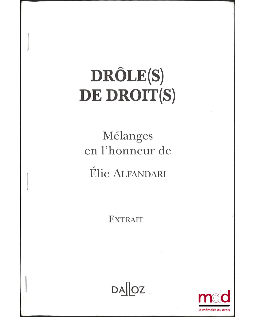 LE DROIT, À CHEVAL SUR LES PRINCIPES GÉNÉRAUX, Extrait de Drôle(s) de droit(s), Mélanges en l’honneur de Élie Alfandari