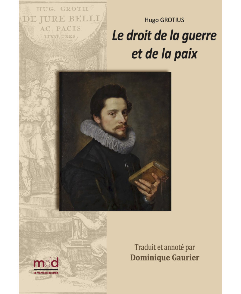 En 1625, paraissaient à Paris, dédiés à Louis XIII, les De jure belli ac pacis Libri tres d’Hugo Grotius. Pour ce quatrième centenaire, après les trois précédentes traditions en langue française de cet ouvrage, Dominique Gaurier a jugé bon de le retraduire totalement pour permettre aux personnes intéressées d'avoir enfin accès au contenu même de l’ouvrage sans le réécrire ou lui faire dire ce qu'il ne disait pas. De fait, les précédents traducteurs semblent avoir plus fait passer leurs propres idées dans leurs traductions que celles de l’auteur, notamment en modernisant trop le texte et ses concepts.Ce dernier traducteur, qui a beaucoup traduit tant du latin que du néerlandais d'autres ouvrages de Grotius, espère ainsi avoir contribué à une connaissance plus exacte de la place tenue par Grotius qui est loin d’être l'auteur moderne, trop souvent présenté comme le fondateur du droit international moderne, que l’on croit et qui reste très ancré dans la tradition des écrivains de la seconde moitié du XVIe siècle.Le lecteur percevra mieux à travers cette dernière et quatrième traduction, on l’espère, la véracité de cette affirmation.